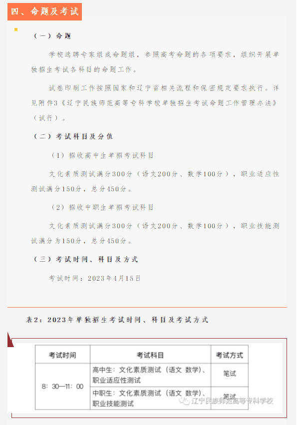辽宁民族师范高等专科学校2023年单独招生考试招生简章